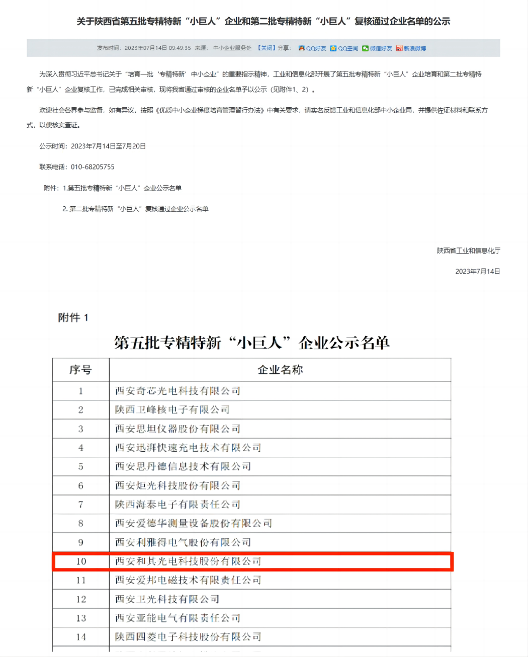 喜報-西安和其光電科技股份有限公司榮獲國家級專精特新“小巨人”企業(yè)