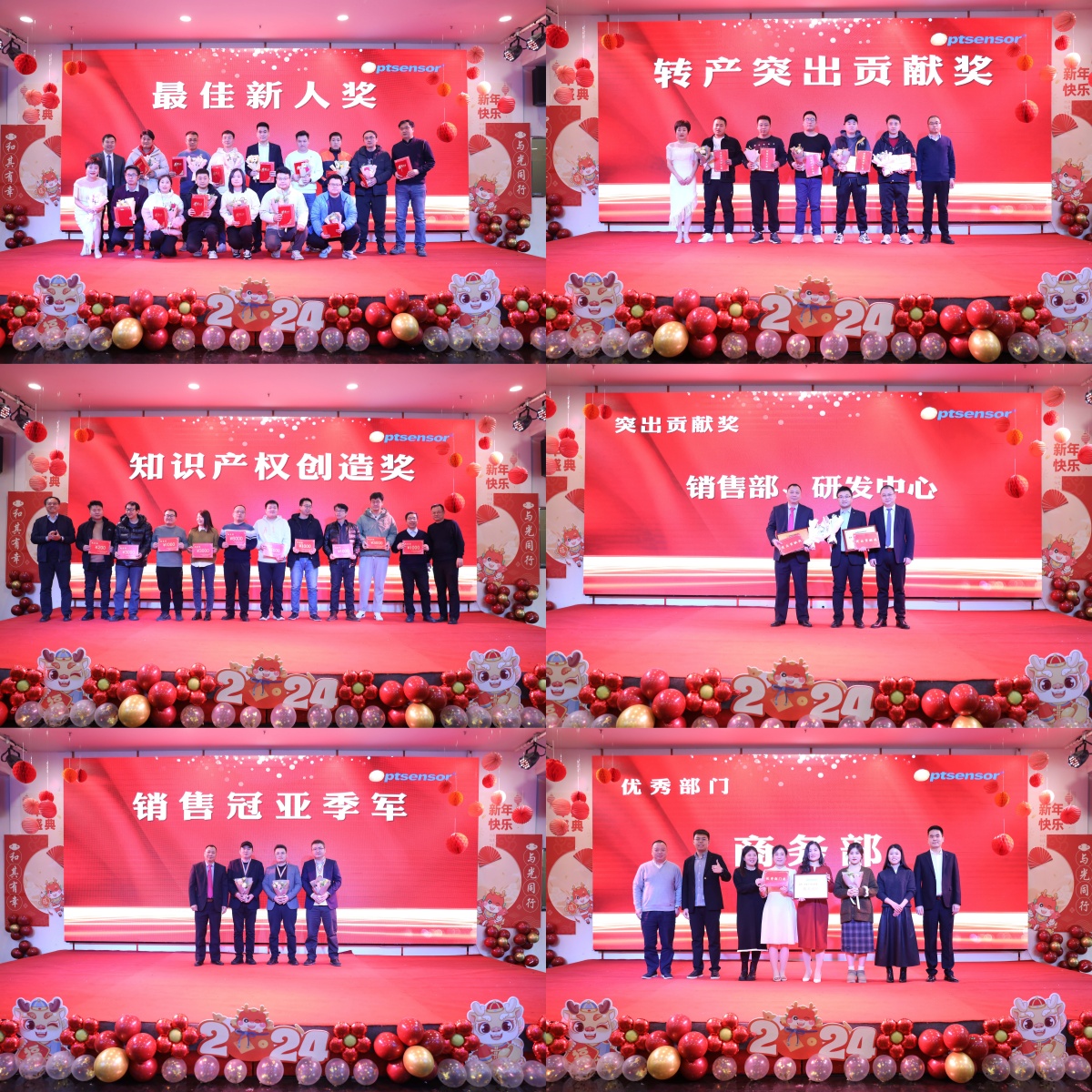 第三部分,公司領(lǐng)導(dǎo)為2023年度評(píng)優(yōu)評(píng)先團(tuán)隊(duì)及個(gè)人頒發(fā)榮譽(yù)獎(jiǎng)項(xiàng)。“千淘萬漉雖辛苦,吹盡狂沙始到金?!边^去的2023年,全體和其人用智慧和力量書寫輝煌,用勤奮和熱血?jiǎng)?chuàng)造奇跡,為和其光電創(chuàng)造了一個(gè)又一個(gè)佳績。其中,涌現(xiàn)出一批優(yōu)秀的團(tuán)隊(duì)和員工代表,他們敢想敢干,為實(shí)現(xiàn)公司業(yè)務(wù)持續(xù)發(fā)展注入新動(dòng)力。
