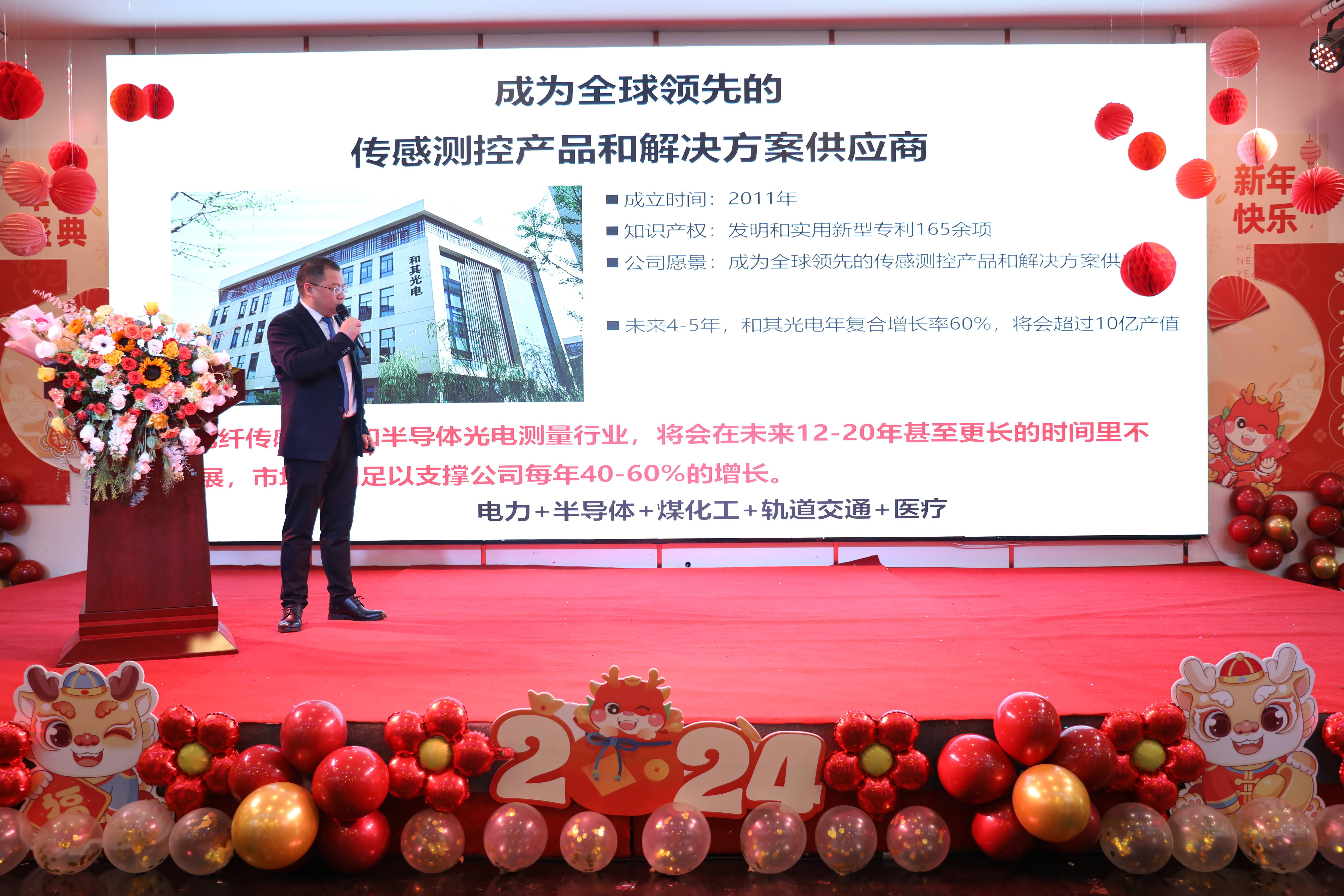 第一部分,公司總經(jīng)理作《2023年度工作總結(jié)報(bào)告》。帶領(lǐng)大家回顧了和其光電過去一年的發(fā)展,對(duì)所有并肩同行的伙伴表示感謝,同時(shí)表達(dá)了公司對(duì)全體員工的深切關(guān)懷和美好祝福。